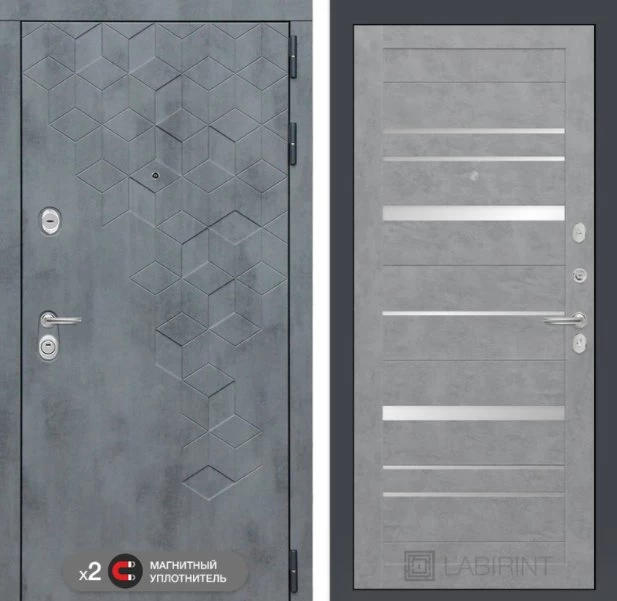 Дизайнерская входная Дверь Бетон класса Люкс с несколькими листами стали, звукоизоляцией и теплоизоляцией. Утепленный короб и полотно защитят от сквозняков и шумов. Модель не только надежная, комфортная, защищенная и высочайшего качества, но и очень красивая! Будет отлично сочетаться с интерьером дома, квартиры или офиса. Сейчас действует выгодное предложение по цене: 55 483 руб.